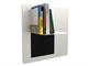 Libreria componibile in alluminio verniciato, caratterizzata da un design essenziale e colori abbinabili a qualsiasi ambiente. La disposizione di uno o più Riquadri permette di trasformare la parete, conferendole uno stile artistico e scultoreo.