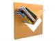 Disponibile senza o con inserti posizionati sul retro del pannello in essenze materiche e superfici tattili: metallo Corten, marmo Black Stone e legno Old Pine.