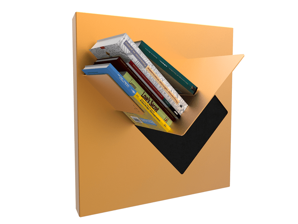 Stile: La singola mensola diventa come un quadro in grado di incorniciare i libri o gli oggetti a noi preferiti, l'unione di più elementi, crea librerie a composizioni libere, che danno vita ad una libreria da parete dallo stile creativo, come un quadro o una scultura di arte contemporanea.