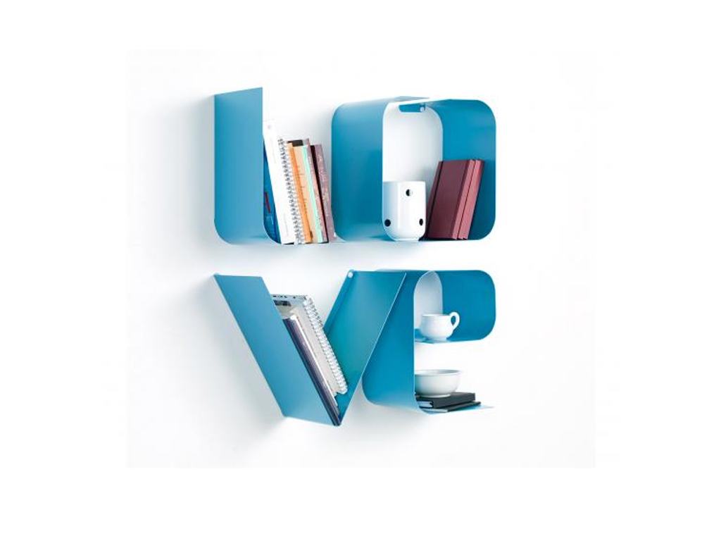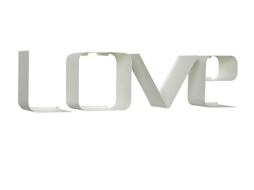Mensola disponibile in vari colori, composta da 4 lettere in metallo verniciato che compongono la scritta LOVE.
