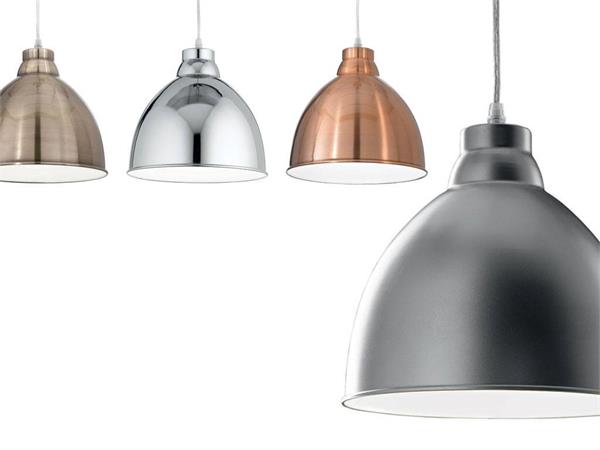 Montatura e diffusore in metallo con varie finiture.Interno smaltato bianco. Cavo elettrico regolabile in lunghezza.