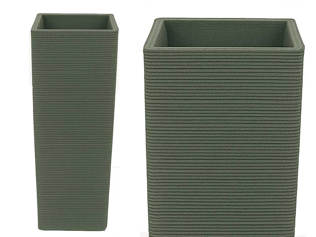 La forma slanciata e minimalista lo rende perfetto per creare composizioni verticali di grande impatto visivo, soprattutto in spazi dove l’altezza diventa protagonista. All’interno può ospitare vasi fino a 28 cm di diametro e 24 cm di altezza, risultando versatile per piante verdi ornamentali, fiori stagionali o piccole siepi decorative.