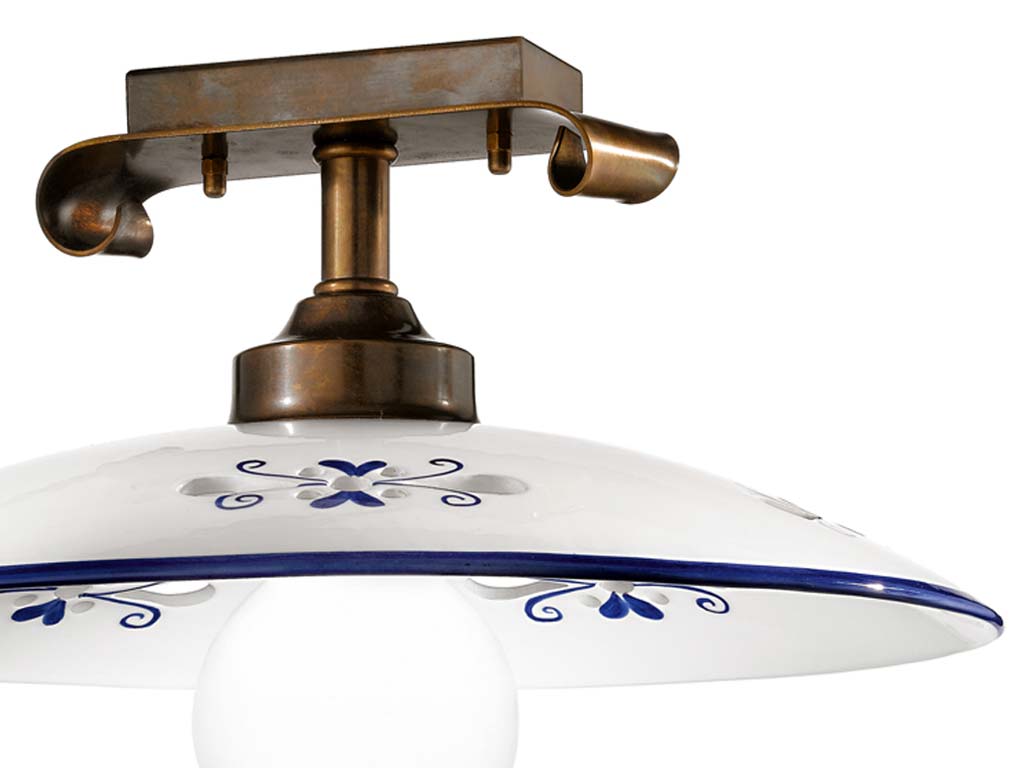 Plafoniera classica, plafoniera con paralume in ceramica decorata e struttura in ottone, ideale come plafoniera classica per soggiorno o plafoniera per cucina classica....