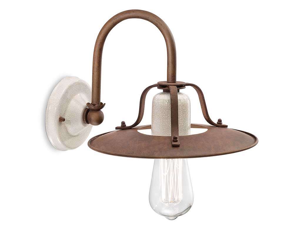 Applique vintage, lampada a braccio da parete vintage, applique ceramica vintage, ideale come applique cucina o applique ingresso. Plafoniera vintage, in metallo e ceramica, ferro anticato corten, Diametro 25. Lo stile vissuto e anticato è ottenuto attraverso effetti di usura volutamente realizzati con tecniche artigianali e curati nei minimi dettagli.