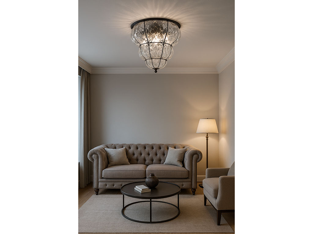 Plafoniere in cristallo a soffitto, plafoniera in vetro soffiato, ideale come plafoniera da soffitto classica o plafoniera elegante soggiorno.