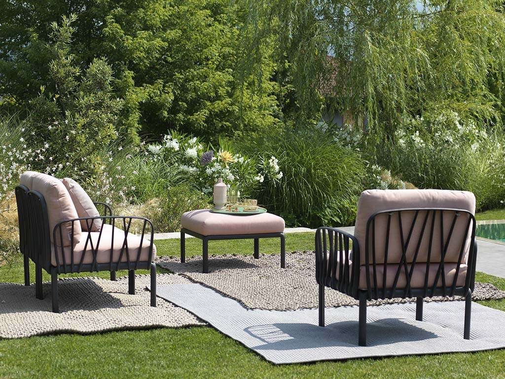 Poltrona da esterno di design elemento centrale, ideale come poltrona da giardino o come poltrona da terrazzo, con struttura in polipropilene e seduta imbottita.