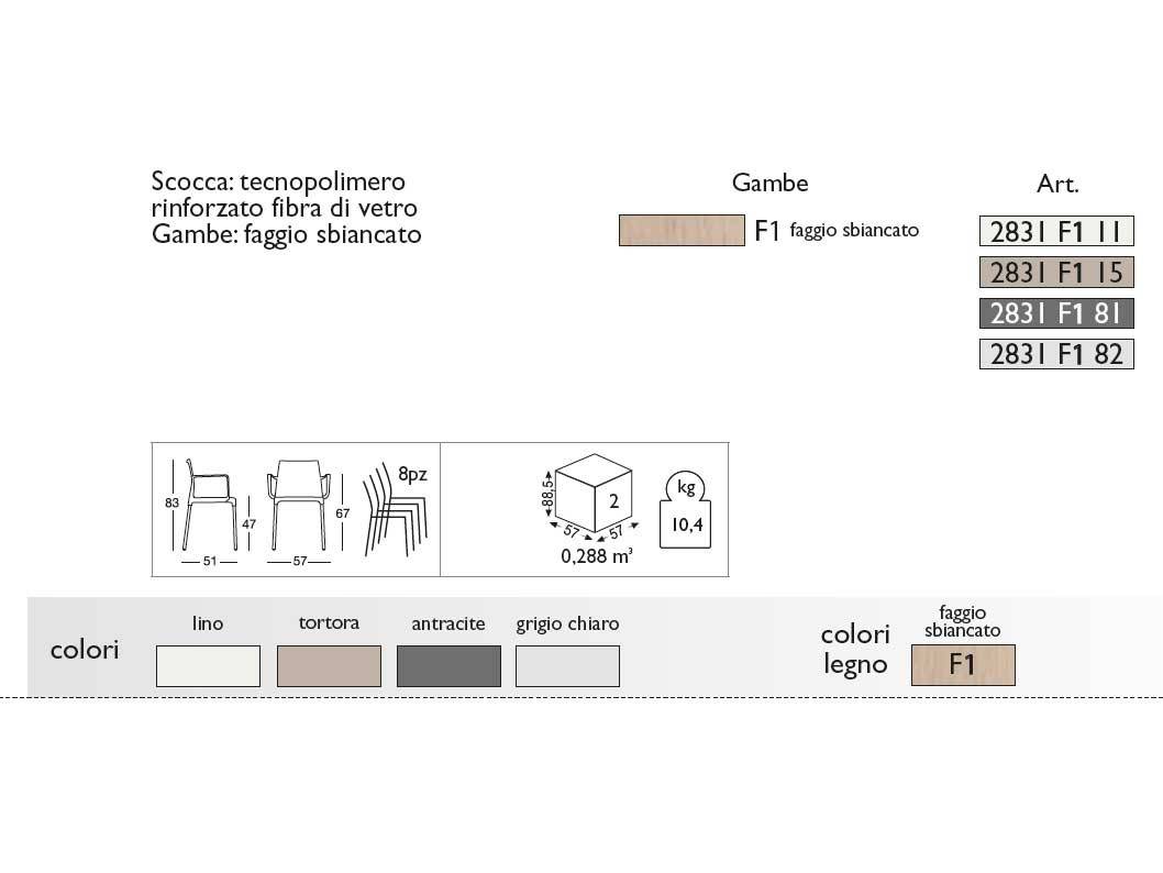 Seduta con scocca in tecnopolimero rinforzato fibra di vetro e gambe faggio sbiancato.