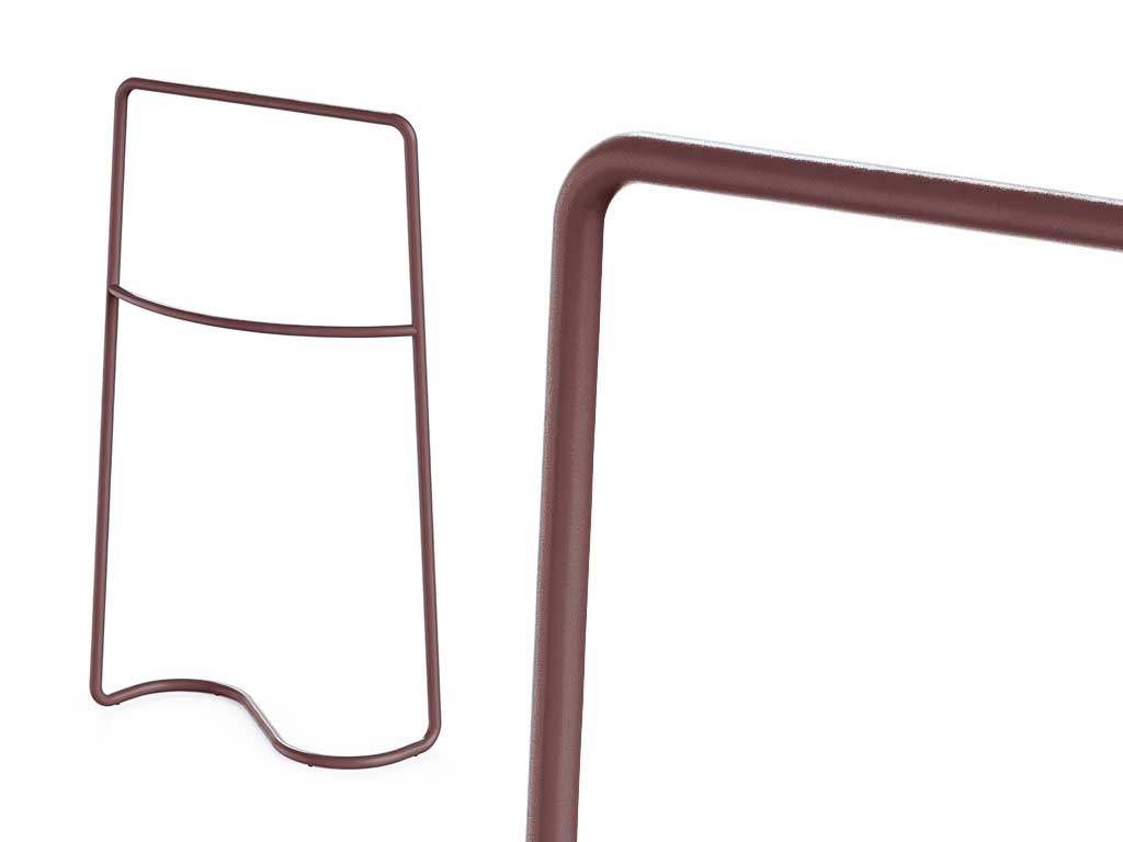 La sua struttura leggera e minimale è realizzata in metallo verniciato, con una gamma di raffinati colori pastello che aggiunge un tocco di freschezza ed allegria allo spazio.