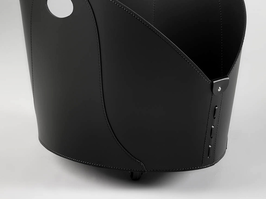Realizzato a mano in cuoio di alta qualità, questo porta legna per camino si distingue per le linee morbide e avvolgenti, le cuciture a vista e la struttura solida, studiata per contenere la legna in modo ordinato e sempre a portata di mano. Il fondo accoppiato con legno ovale e ruote ed il design curato nei minimi dettagli. Il cuoio, materiale naturale e resistente, conferisce al prodotto un aspetto caldo e sofisticato, ideale per ambienti domestici in cui ogni dettaglio è pensato per durare nel tempo.