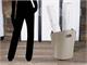 Borsa porta legna in cuoio, base a terra in legno con ruote gommate.