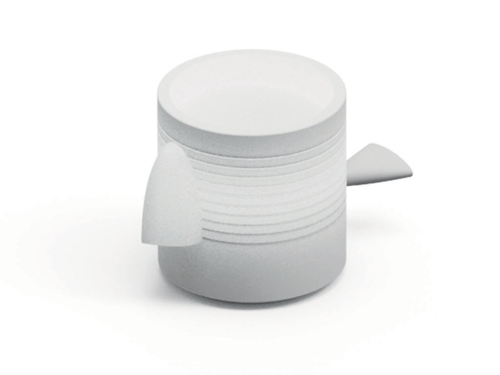 La sua forma essenziale e bilanciata, arricchita da dettagli geometrici laterali che fungono da manici, richiama la solidità e l’equilibrio delle sculture moderne, fondendo funzionalità e raffinatezza in un unico oggetto.