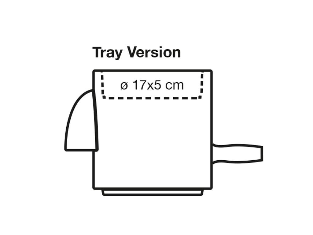 Tray Version, con vano superiore Ø 17×5 cm, utilizzabile come piano d’appoggio o piccolo vassoio luminoso.