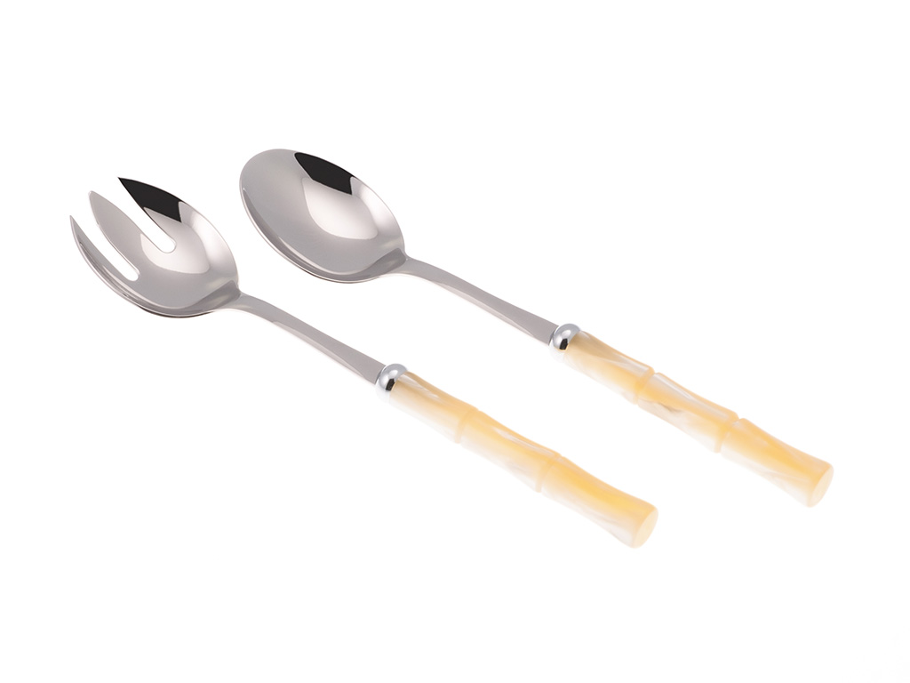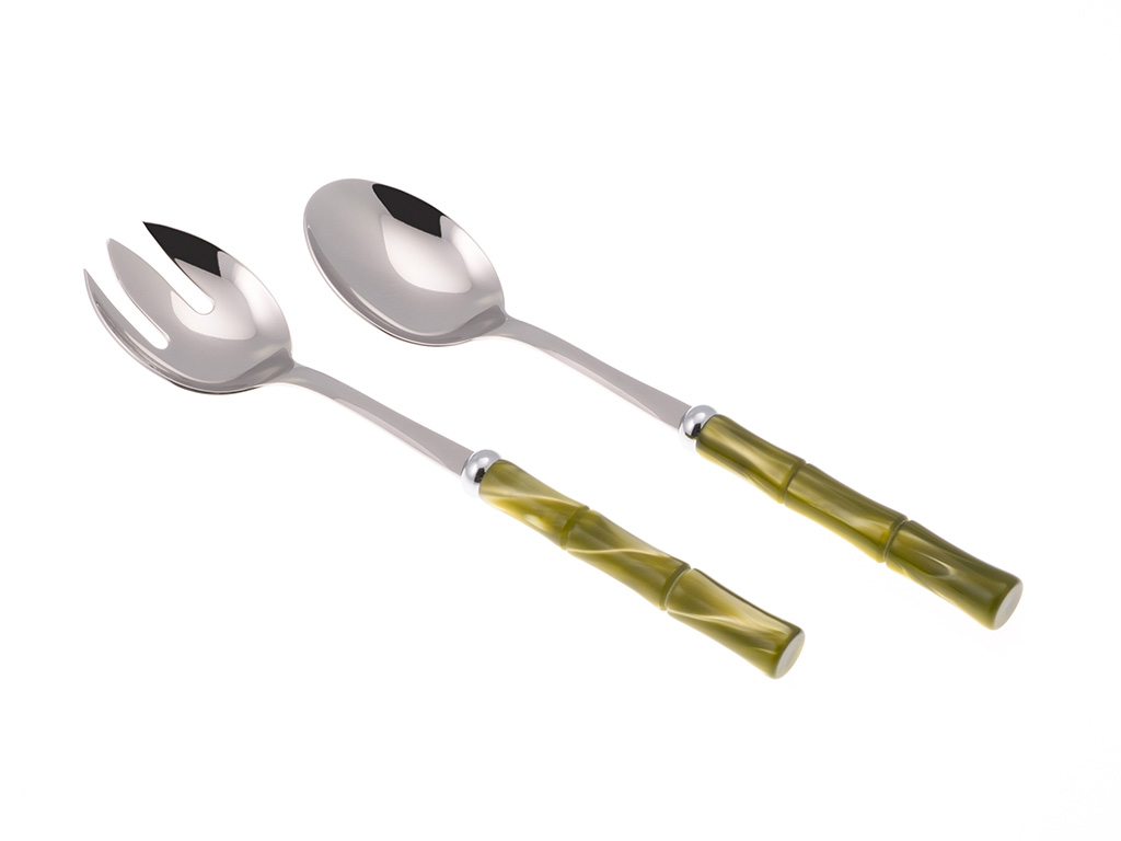 Set 2 Posate da Insalata con Manico Effetto Bamboo – Avorio o Verde Oliva