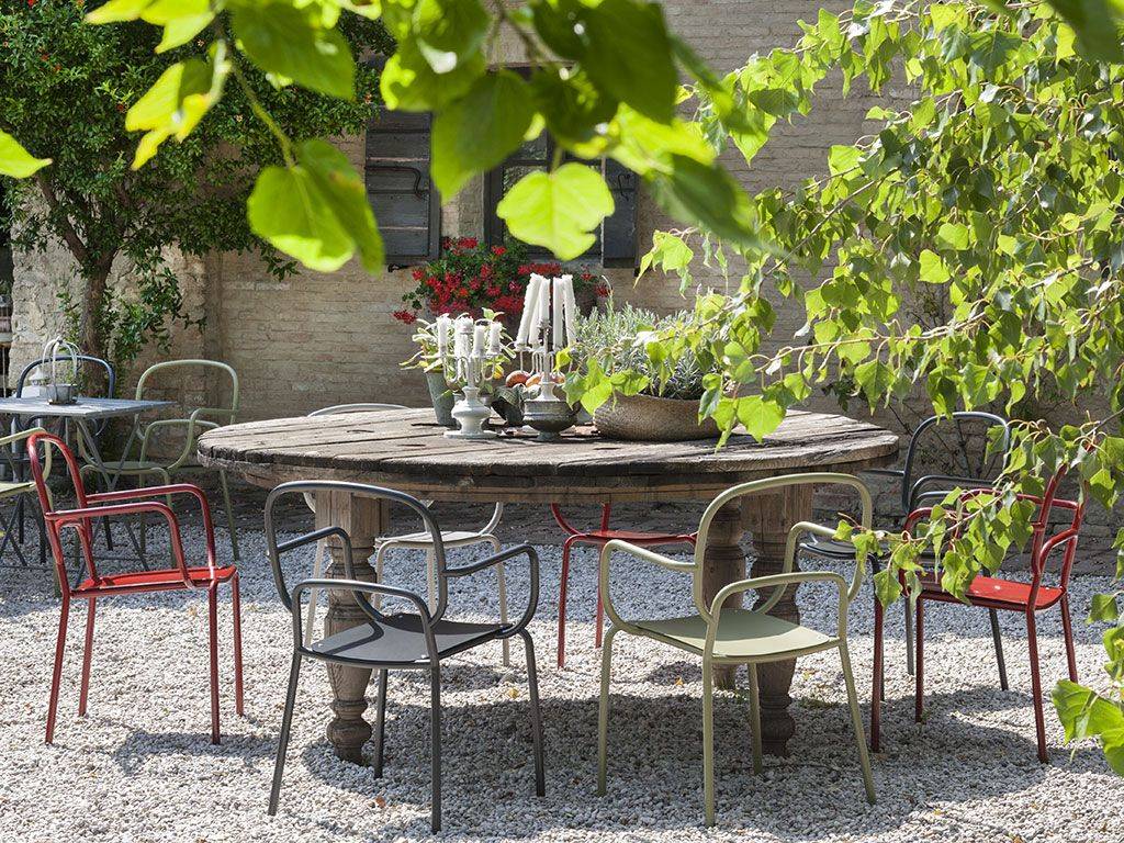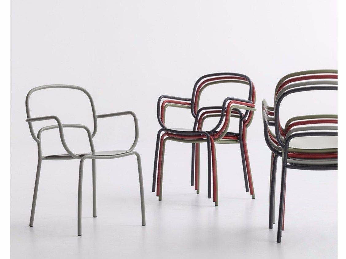 Vantaggi: la sedia è impilabile, la struttura in acciaio verniciato, disponibile in diversi colori con effetto materico e naturale.