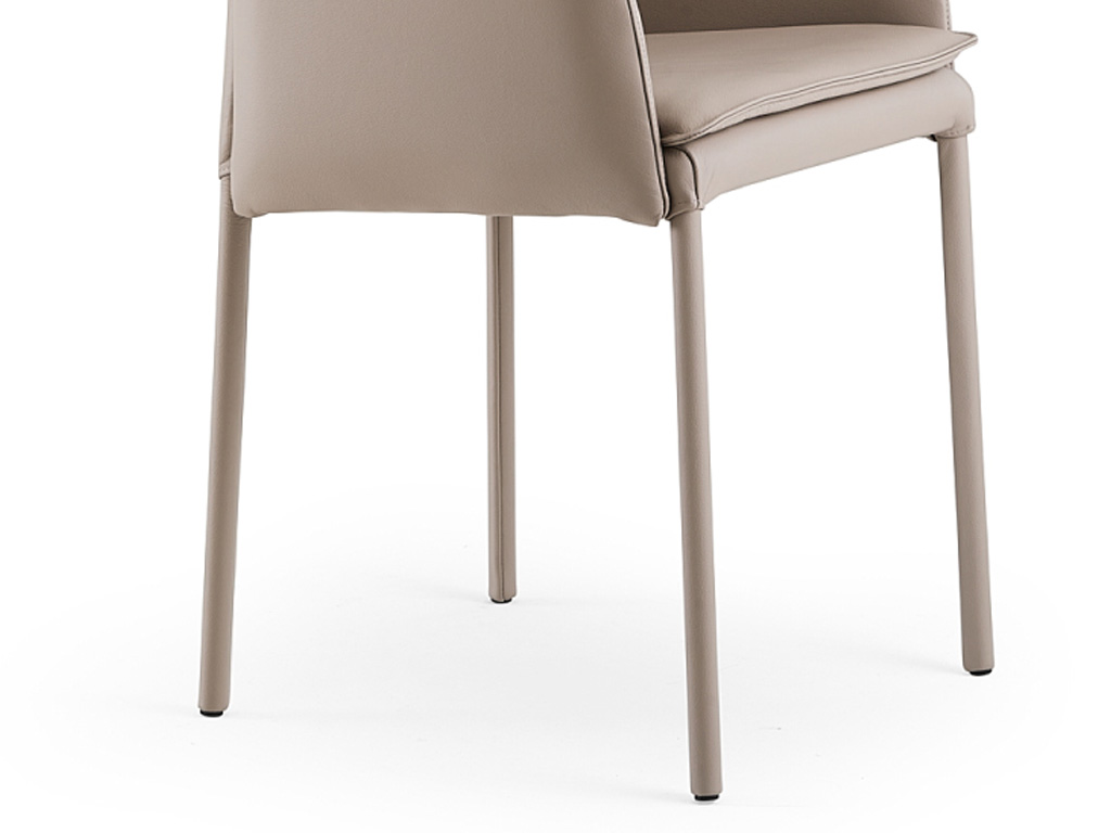 La seduta e lo schienale imbottiti garantiscono un comfort ottimale anche per sedute prolungate, mentre la struttura in acciaio verniciato assicura solidità e resistenza nel tempo, unendo robustezza e leggerezza in un equilibrio perfetto.