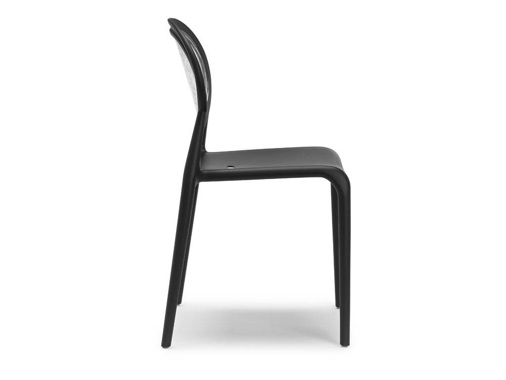 Struttura in polipropilene rinforzato con fibra di vetro. Stampata ad iniezione con tecnica air moulding. Schienale in policarbonato trasparente. Disponibile in vari colori.