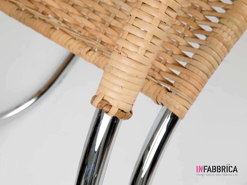 Fettuccia lignea ricavata dalla corteccia del giunco, intrecciata a mano sulla struttura di metallo.