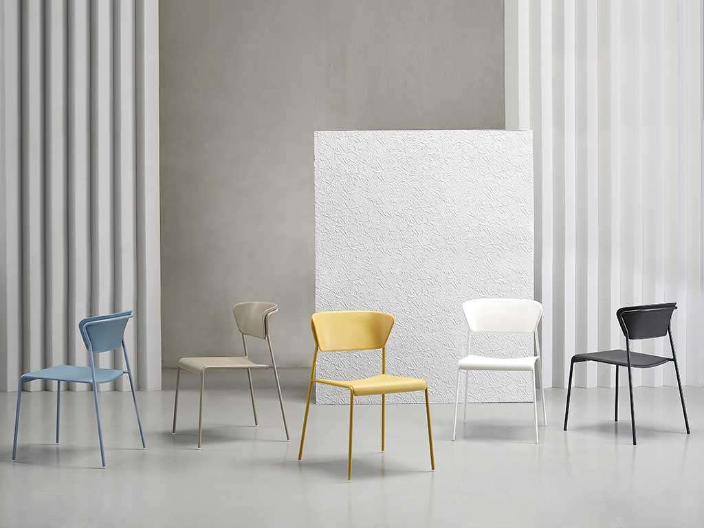 Sedie da giardino, sedie da esterno, sedie da giardino colorate, ideali come sedie in metallo da esterno o sedie da esterno design. Sedia in tecnopolimero impilabile in acciaio tubolare ø 16 mm verniciato con seduta e schienale in tecnopolimero ideale sia per uso interno sia esterno. Sedia elegante caratterizzata da forme morbide e colori contemporanei. Particolarmente adatto e consigliato per strutture ricettive come hotel, agriturismi e B&B dotati di piscina, giardino e/o spazi esterni.