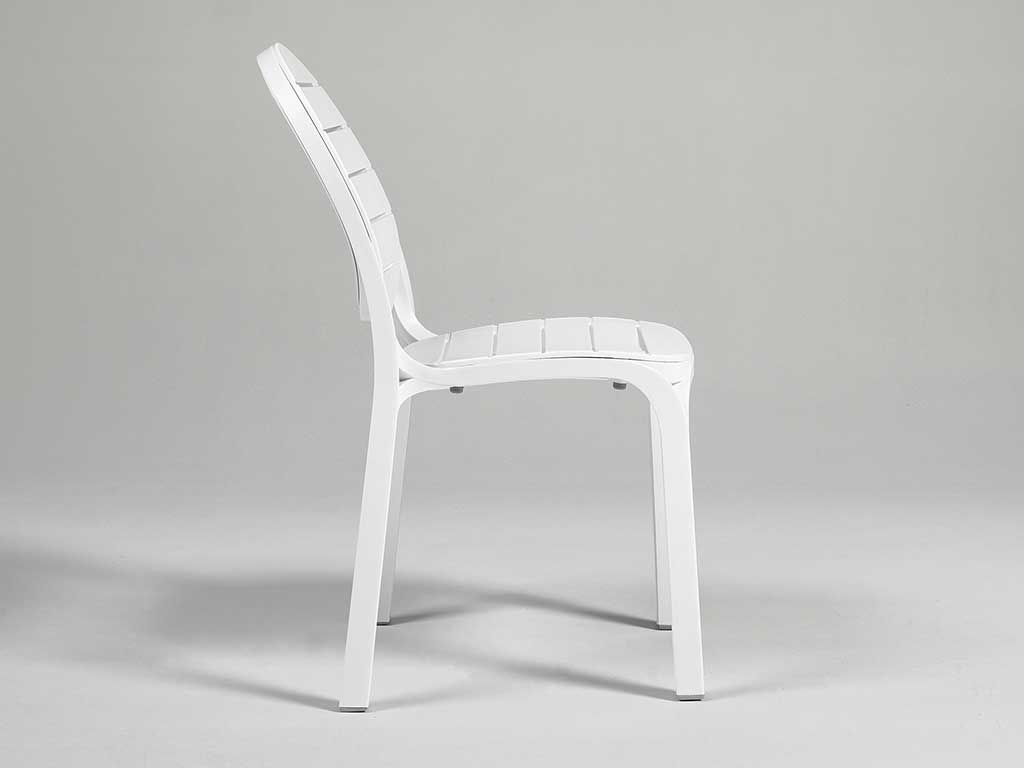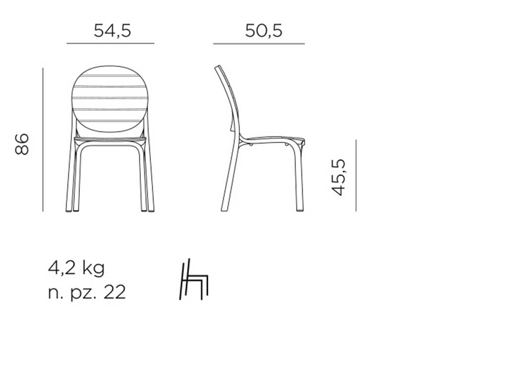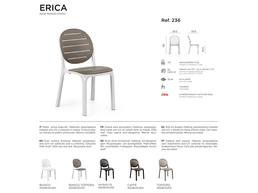 Materiale: polipropilene trattato anti-UV e colorato in massa. Finitura opaca. Dotata di piedini antiscivolo. Resina riciclabile.
