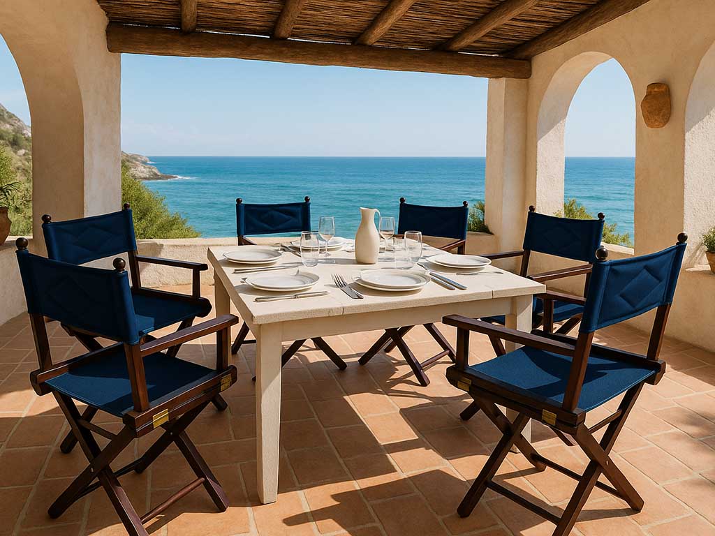 Playa: sedie regista in legno con telo Idrorepellente imbottito