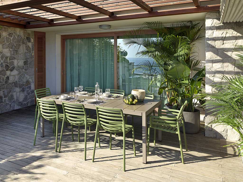 Design raffinato e cura del dettaglio, seduta in resina fiberglass trattata anti-UV e colorata in massa.