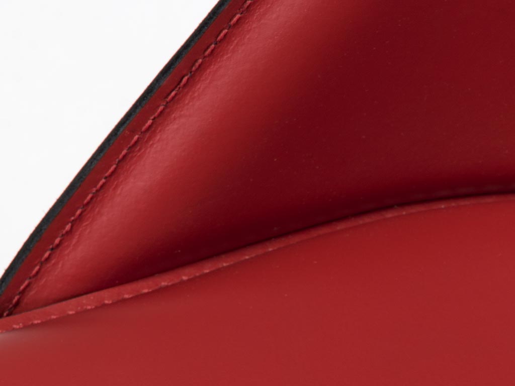 La sedia in cuoio Karina è disponibile in un’ampia gamma di colori (vedi immagine campione). Le cuciture possono essere realizzate in tinta con il rivestimento oppure a contrasto, per un effetto estetico più deciso e distintivo.