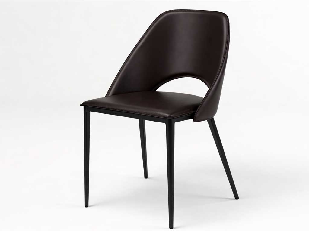 La struttura è realizzata con telaio in ferro resistente e gambe coniche in ferro verniciato, che garantiscono stabilità e lunga durata. Il rivestimento in cuoio di alta qualità, disponibile in diversi colori, permette di abbinare facilmente la sedia a tavoli da pranzo, tavoli moderni e arredamenti contemporanei.
