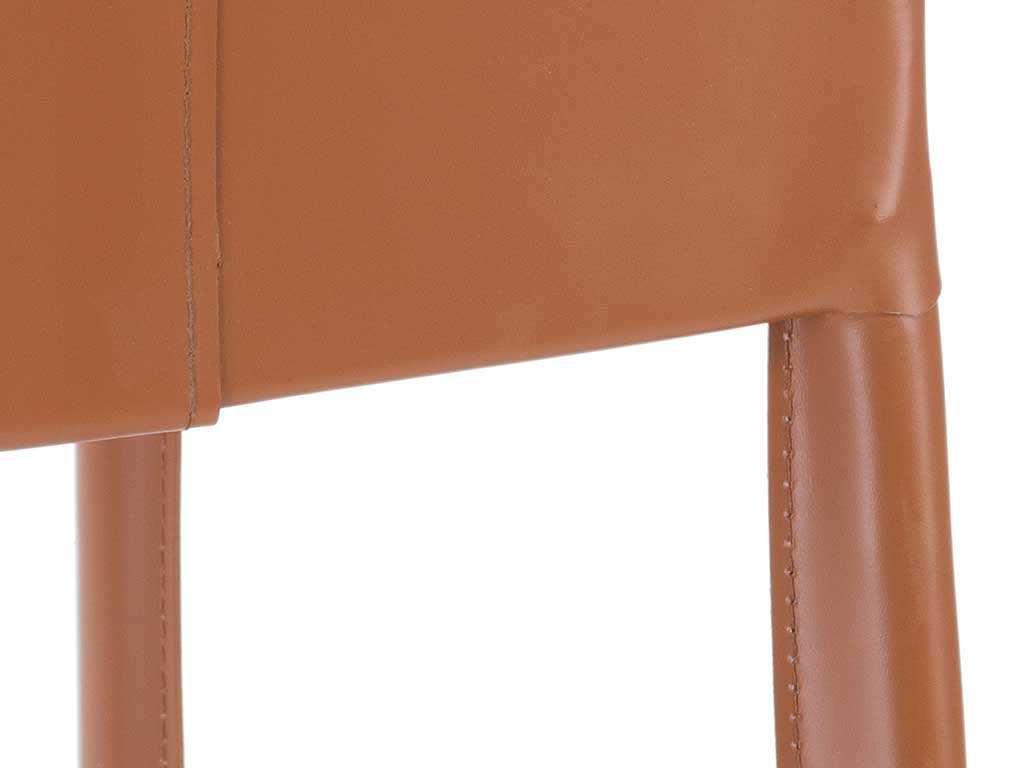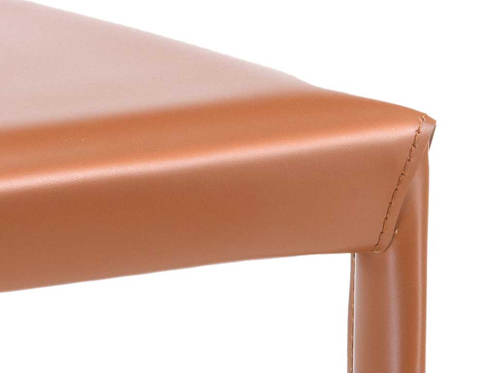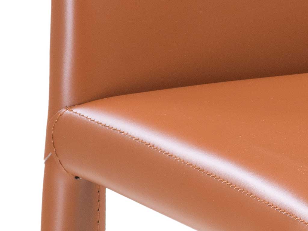 La seduta in cuoio di prima scelta garantisce comfort e resistenza. Il materiale proviene da pelli bovine europee selezionate e certificate, lavorate da maestri conciatori che ne esaltano la morbidezza e la durata. Il cuoio, trattato con cura, si adatta perfettamente alla struttura in acciaio, creando una sedia solida, elegante e resistente all’usura.