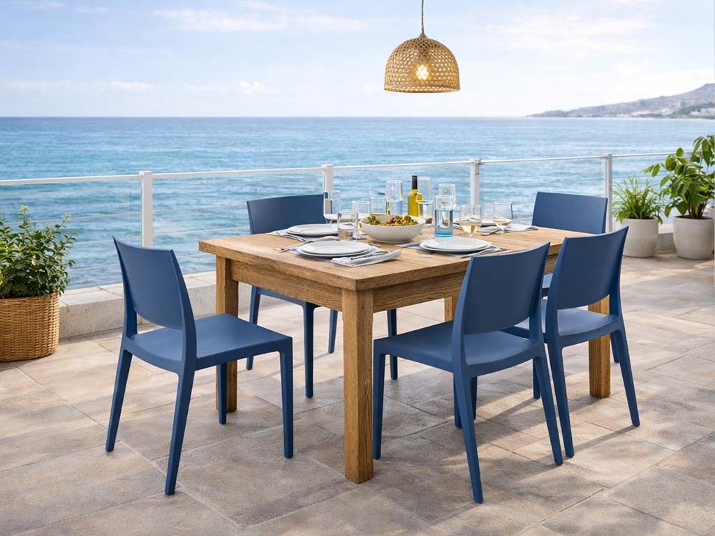 Realizzata in polipropilene di qualità 100% riciclabile, questa tra le migliori sedie in polipropilene garantisce leggerezza, solidità e resistenza agli agenti atmosferici. È quindi ideale come sedia da esterno per terrazze, giardini, dehors e location per eventi, ma si adatta perfettamente anche come sedia cucina grazie al suo design raffinato e alla facilità di pulizia.
