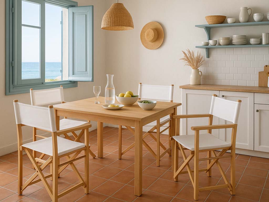 - Finiture Legno: Faggio Naturale Oliato,Tessuti Acrilici Idrorepellenti: Tessuto Acrilico Bianco