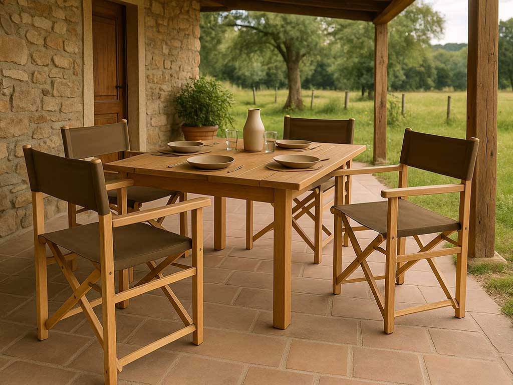 - Finiture Legno: Faggio Naturale Verniciato Trasparente,Tessuti Acrilici Idrorepellenti: Tessuto Acrilico Naturale
