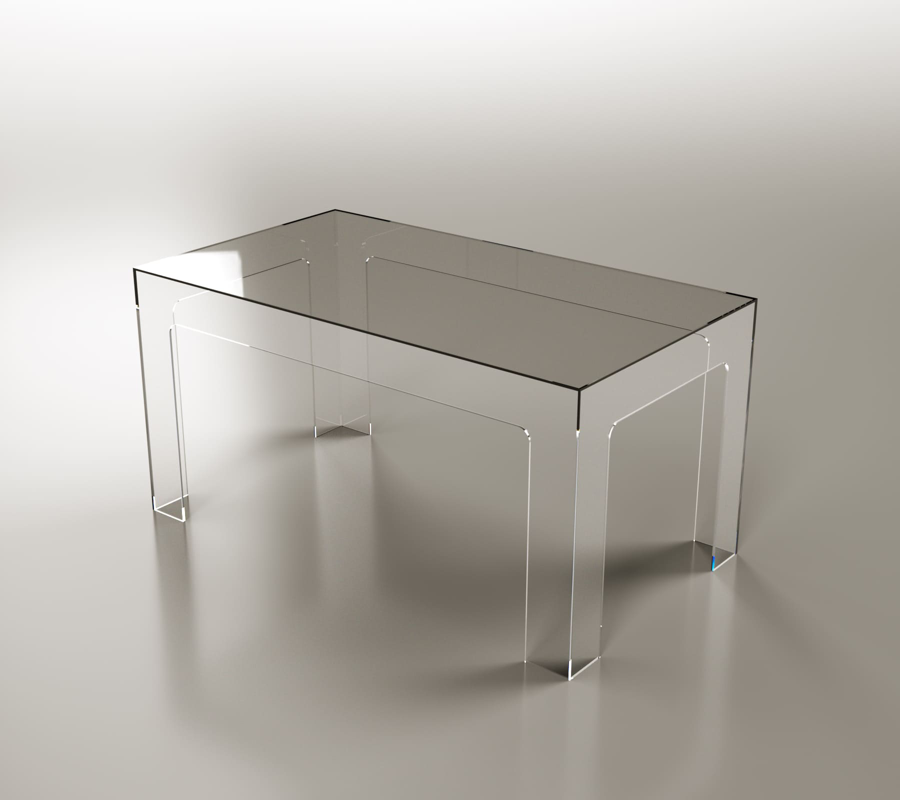 Tavolino rettangolare di design, struttura in cristallo acrilico (plexiglas®), ideale come tavolino da soggiorno accanto al divano, disponibile in più colorazioni.