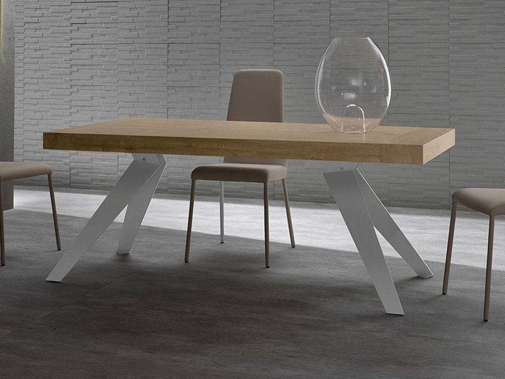 Tavolo allungabile con gambe in metallo laccato, piane e allunghe in melaminico in diverse colorazioni