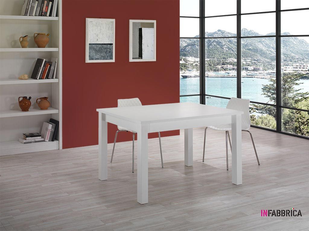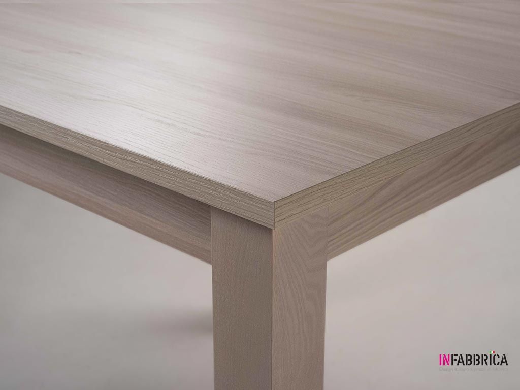 Il tavolo si allunga facendo scorrere il piano ed estraendo l'allunga da un vano posto sotto il piano, le gambe sono in legno massello di frassino verniciate in tinta con il piano.