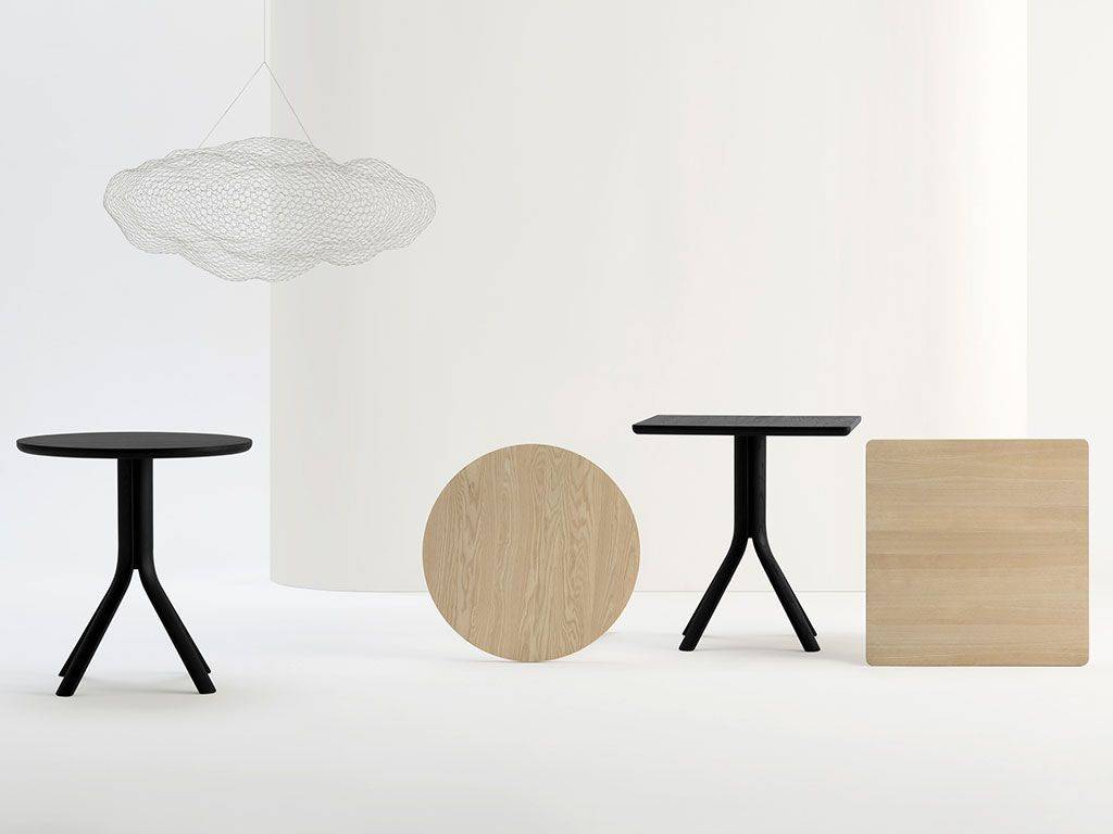 Il tavolo Tree è sorretto da una struttura formata da quattro gambe, ognuna costituita da un unico elemento di legno curvato a vapore, con piano di forma rotonda....