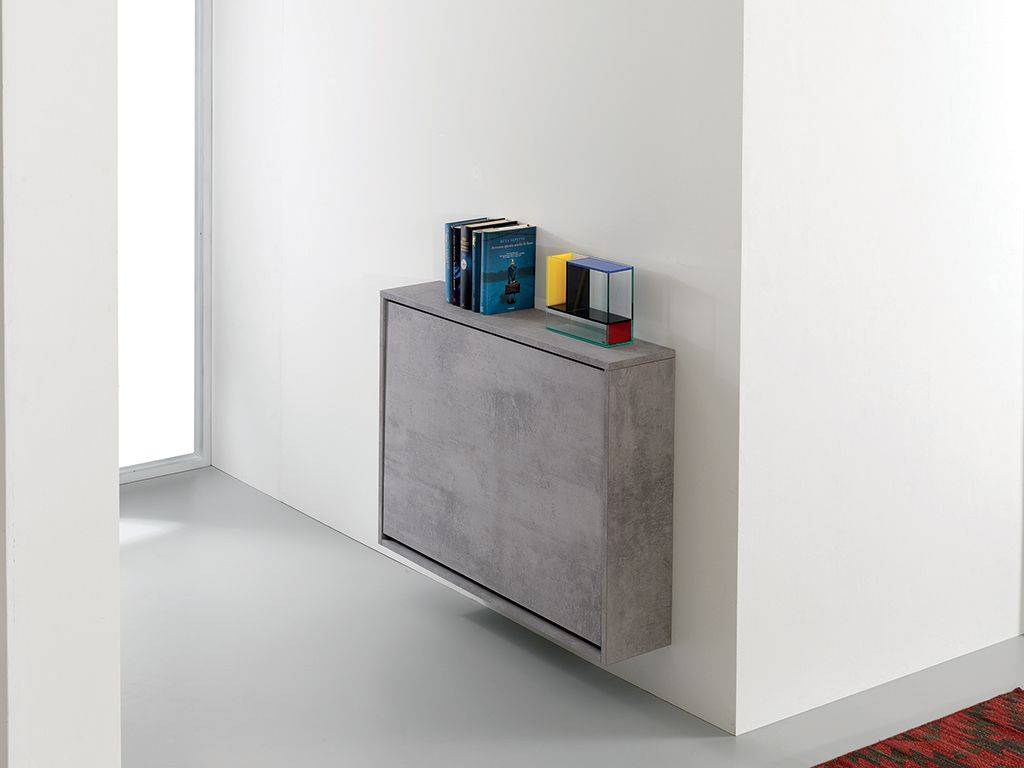 Tavolo a scomparsa, tavolo con sedie a scomparsa, scrivania a scomparsa, adatto anche come scrivania a scomparsa design o consolle allungabile con sedie a scomparsa. Bureau Tavolo/scrivania chiudibile da parete, realizzata, con struttura in acciaio verniciato, con finitura sablé e ripiano in laminato Ecologico da 18 mm. Il vano interno può contenere fino a 3 sedie chiudibili Zeta.