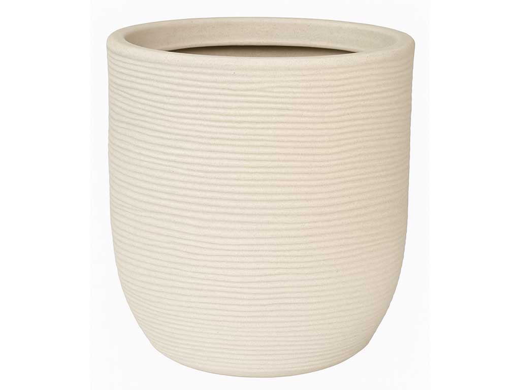 La superficie rigata effetto shabby dona un aspetto raffinato e materico, ideale per chi cerca un vaso decorativo e funzionale per piante, fiori o piccoli alberi.