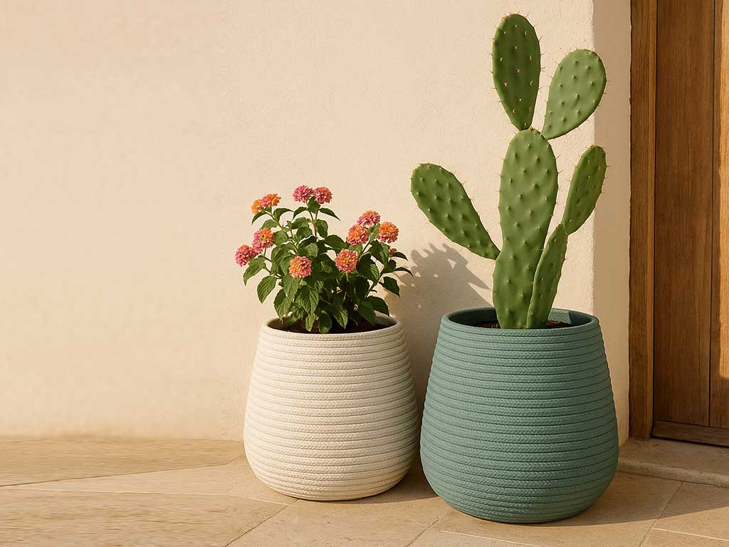 Vasi moderni da interno in plastica effetto corda