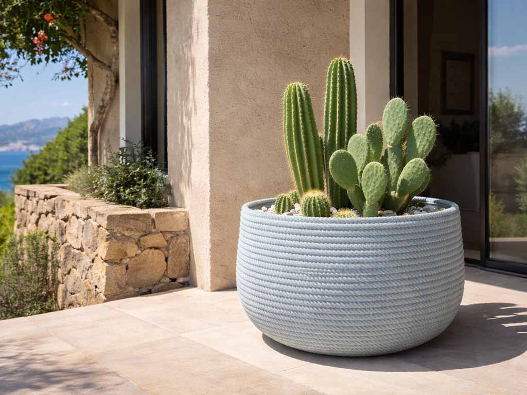 Il vaso di design Bali Acacord è una fioriera moderna effetto corda che combina eleganza, funzionalità e resistenza, adattandosi con stile a ogni tipo di ambiente. La sua forma cilindrica con fondo arrotondato e la texture intrecciata effetto corda donano un aspetto naturale e raffinato, perfetto per arricchire spazi indoor e outdoor. Ideale come vaso decorativo da interno, si inserisce armoniosamente in salotti, hall d’ingresso, verande o open space, aggiungendo un tocco contemporaneo all’arredo. Allo stesso tempo, è una soluzione perfetta come fioriera da giardino, vaso da terrazza o complemento d’arredo per spazi esterni, dove resiste senza problemi a sole, pioggia e gelo.