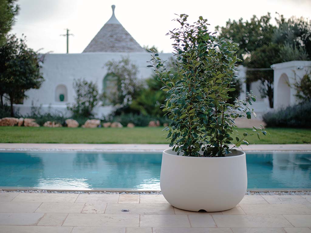 La silhouette avvolgente consente di ospitare piante ornamentali, alberelli o decorazioni scenografiche, diventando un elemento di stile in ogni ambiente.