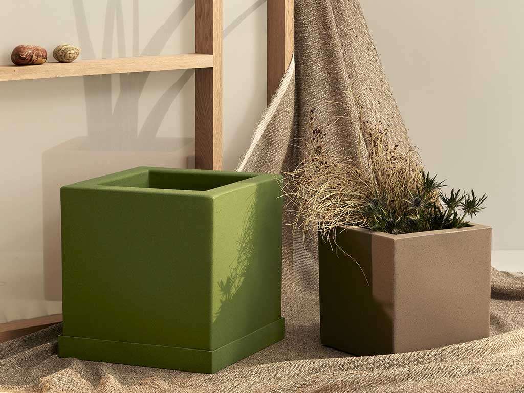 Fioriere in plastica riciclata, vaso quadrato, adatto sia come vasi design interno, che come vasi eleganti per interni da terra.
