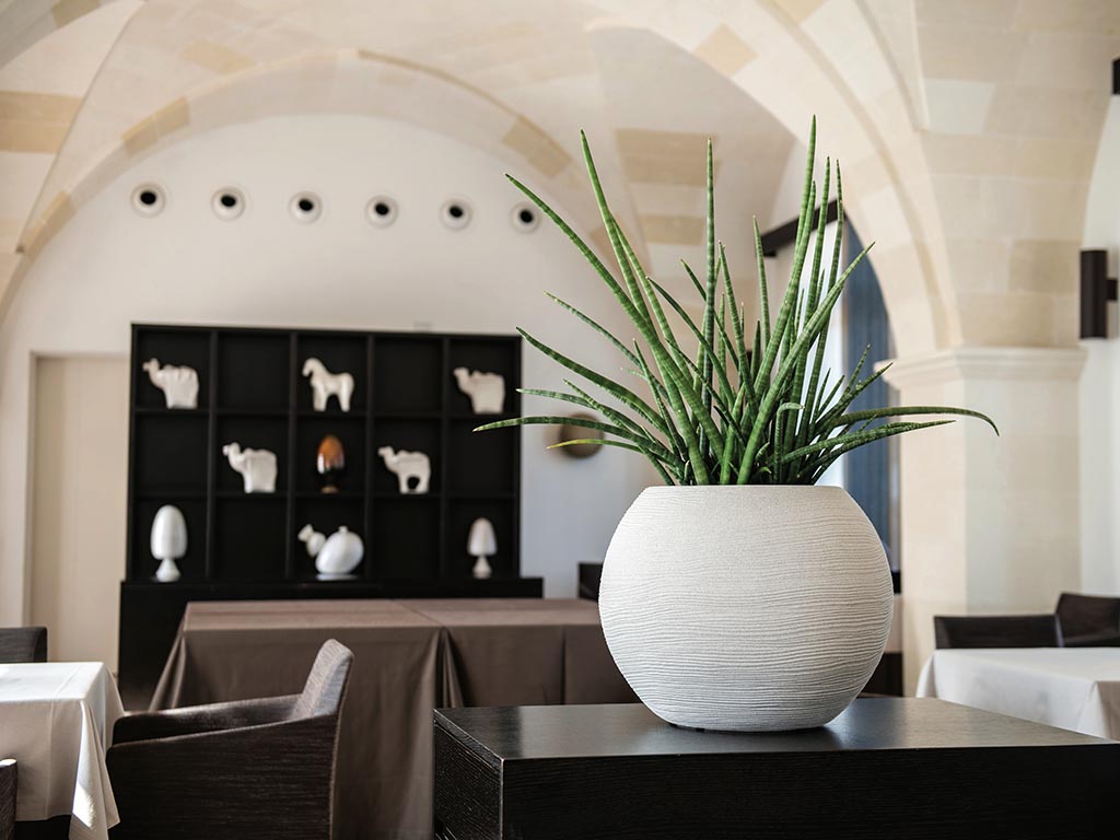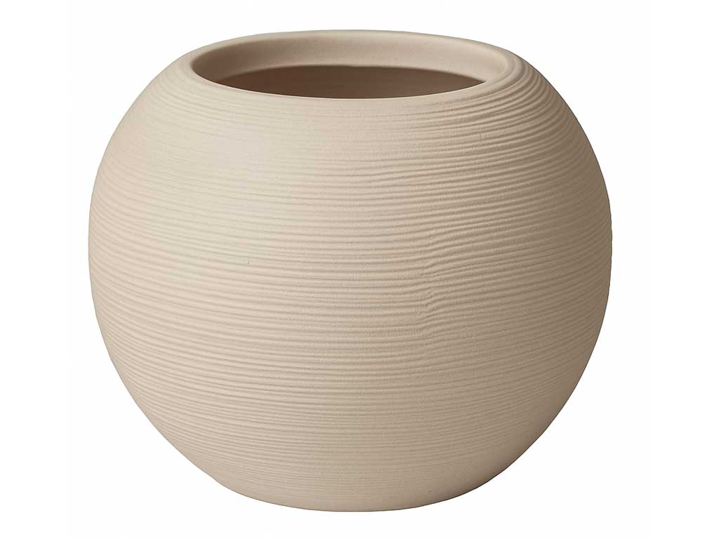 La superficie rigata effetto shabby dona un aspetto naturale e materico, creando giochi di luce che valorizzano ogni ambiente. La forma sferica aggiunge equilibrio e armonia visiva, rendendolo un complemento ideale per case, giardini, terrazze, hotel o spazi commerciali.