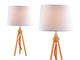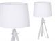 Base in legno naturale con dettagli in metallo. Paralume in lamina di pvc rivestito in tessuto bianco. Cavo esterno in tessuto. Disponibile anche con montatura e paralume bianchi o neri.Perfetta per arredare studi, salotti, camere da letto.